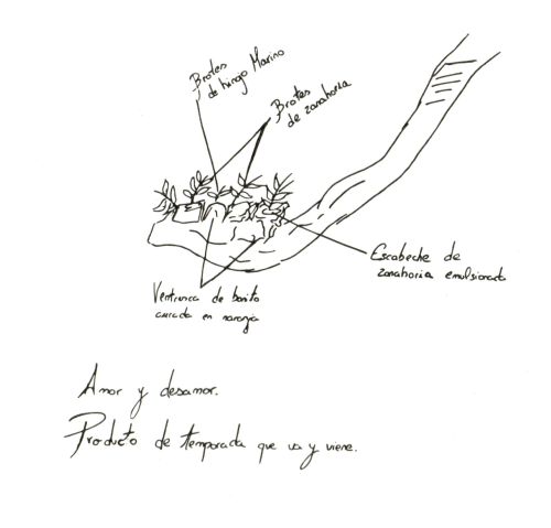 Comenzamos con la estación dedicada a Gustavo Adolfo Bécquer, en la que degustamos una ventresca de bonito curada en naranja con escabeche de zanahoria emulsionada y brotes de hinojo marino y zanahoria.