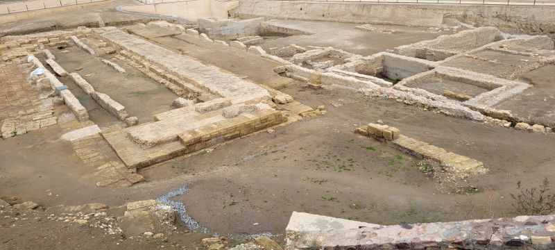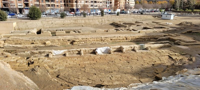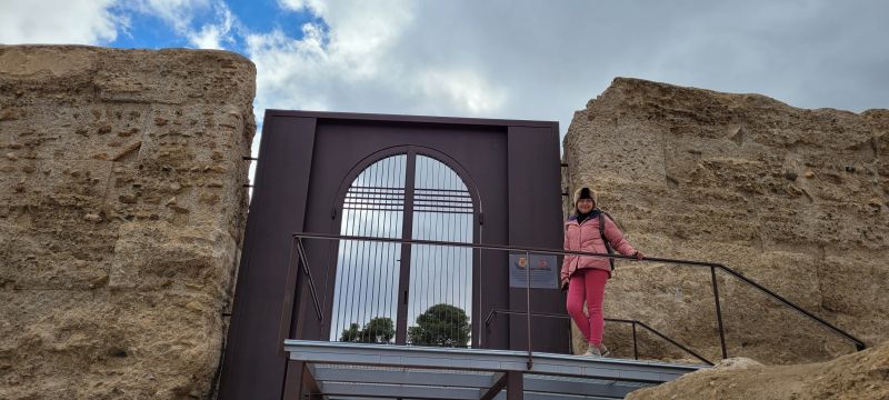 De camino a la catedral pasamos por el teatro romano, descubierto en 2008 de forma fortuita. Construido en el año 25, bajo el mandato de Tiberio, este espectacular teatro, centro de esparcimiento y ocio, se utilizó hasta el año 300. Tiene 6.000 metros cuadrados y dos partes (terrazas), la scaneae y orchestra en la parte superior y los jardines o porticus en la inferior. El teatro fue expoliado en la época andalusí, aunque, al quedar cubierto de lodo por una inundación, se salvó gran parte del mismo.