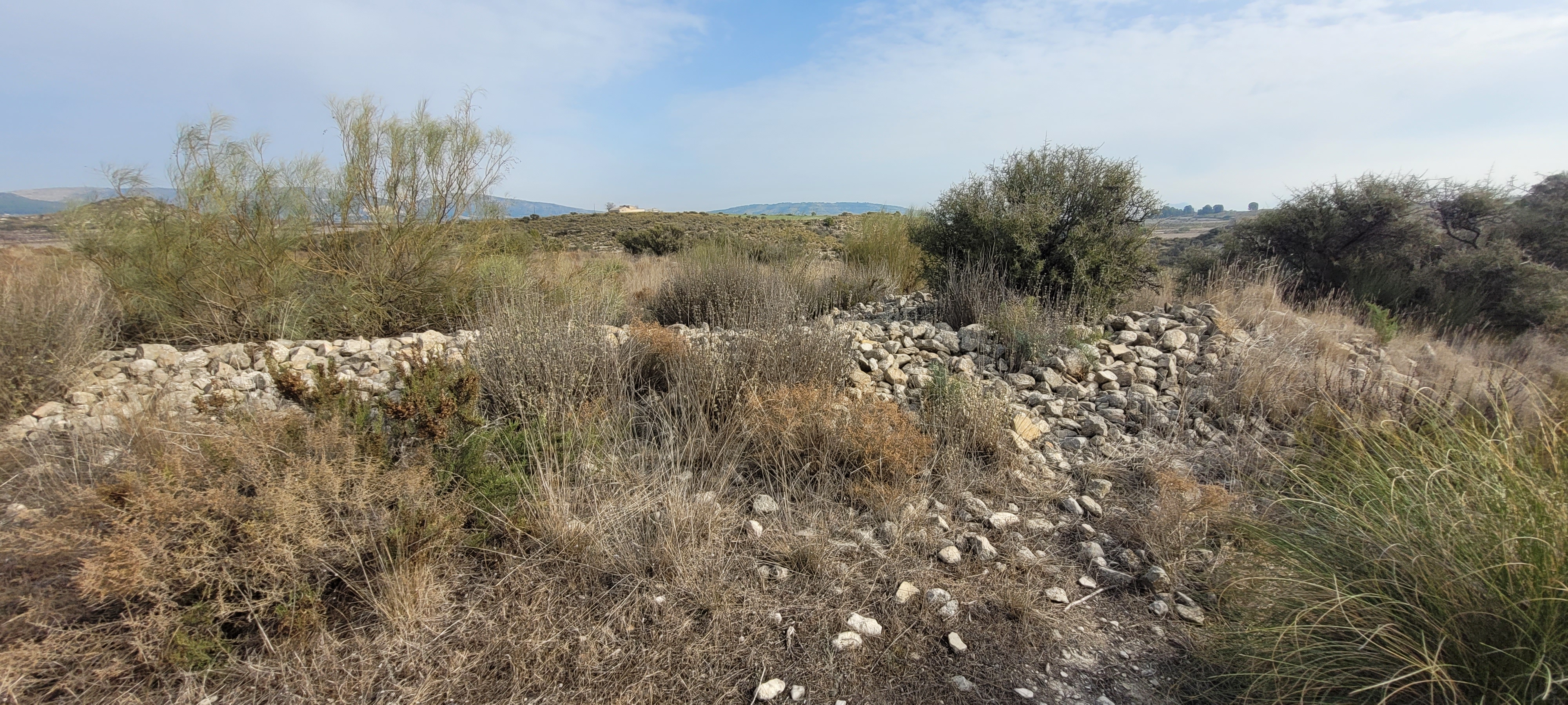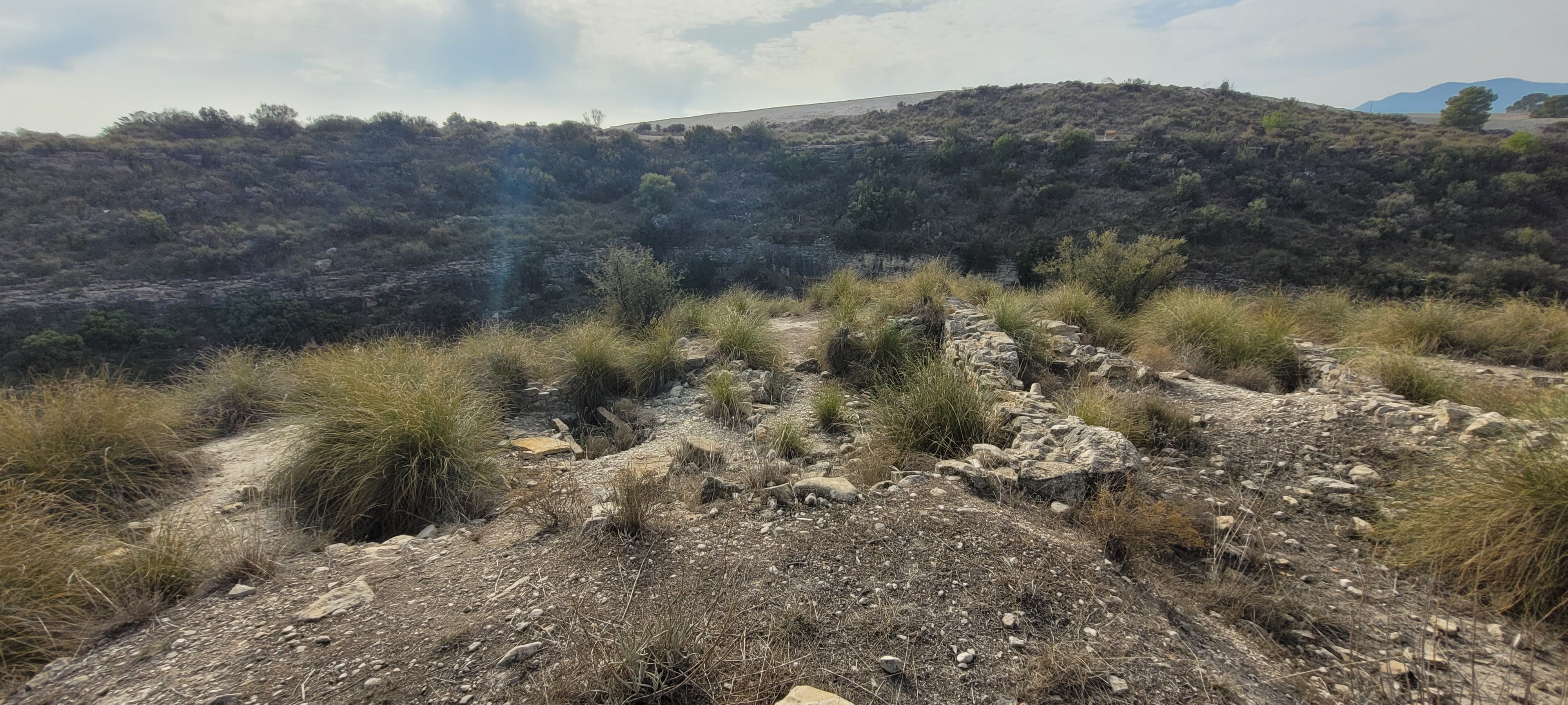 Desviándonos ligeramente del sendero nos adentramos en una ciudad de los iberos. Los restos de su muralla de piedra rodean aún el poblado, protegido por la fortificación en lo alto del cerro. Todo el conjunto del yacimiento íbero de Los Molinicos está declarado Bien de Interés Cultural (BIC) desde el año 2003.