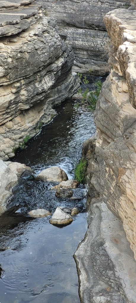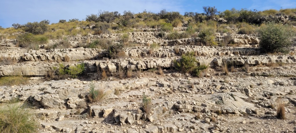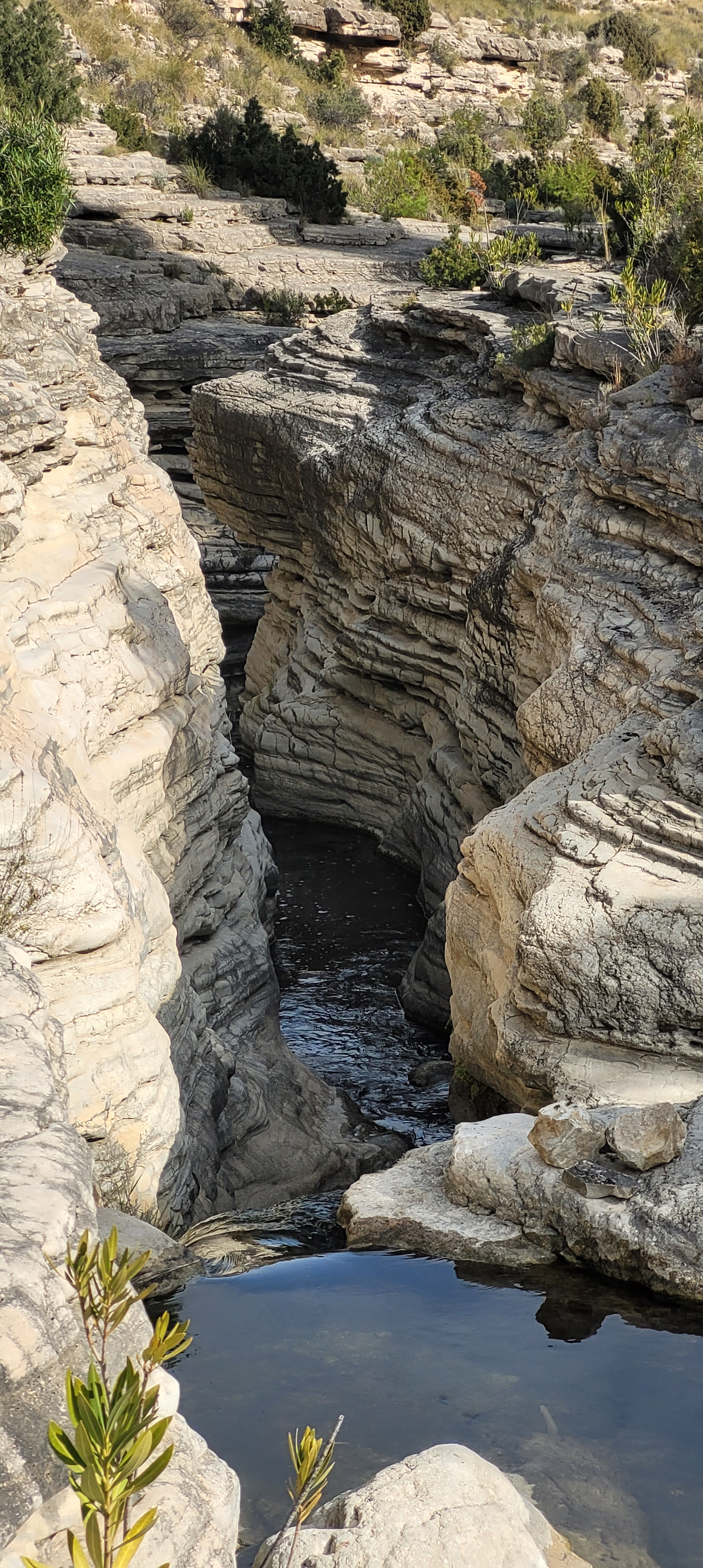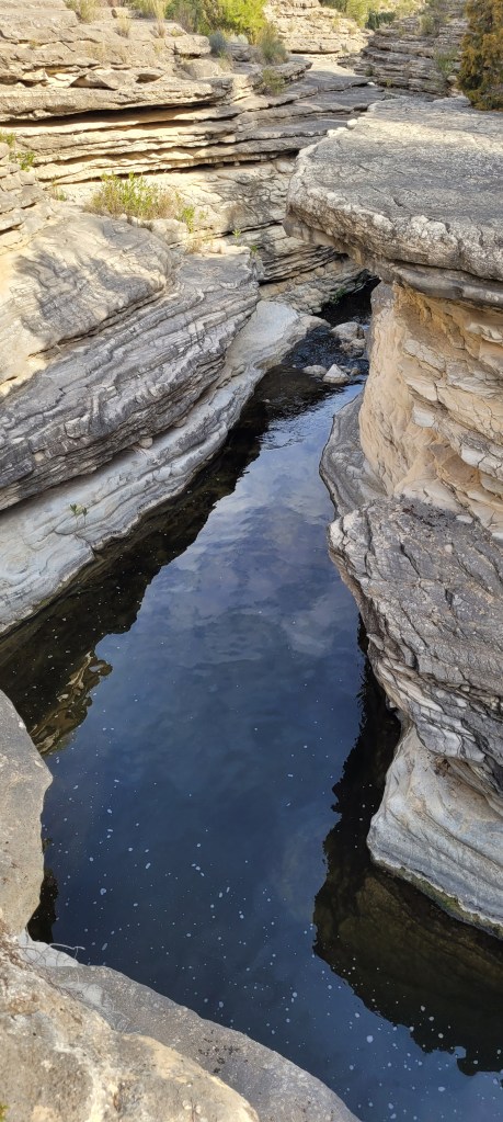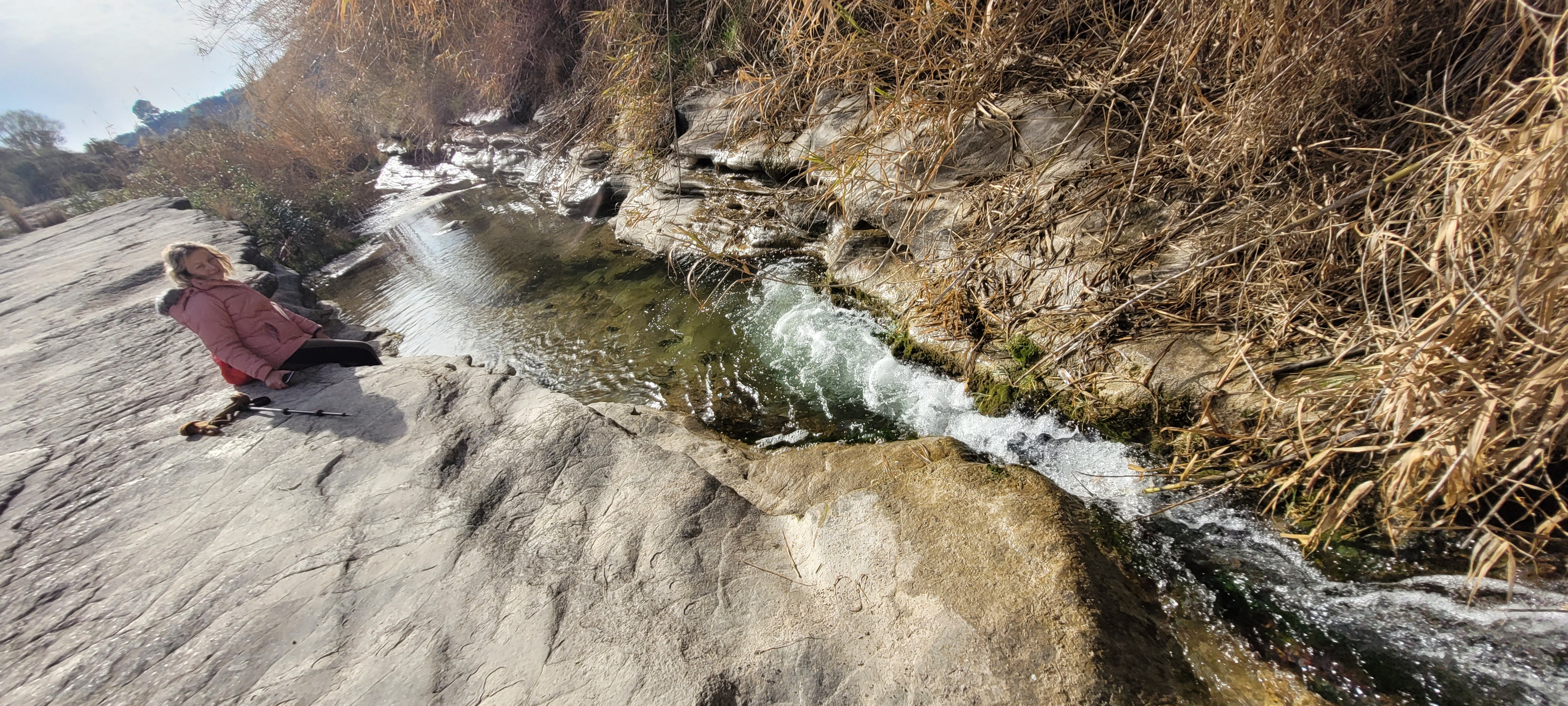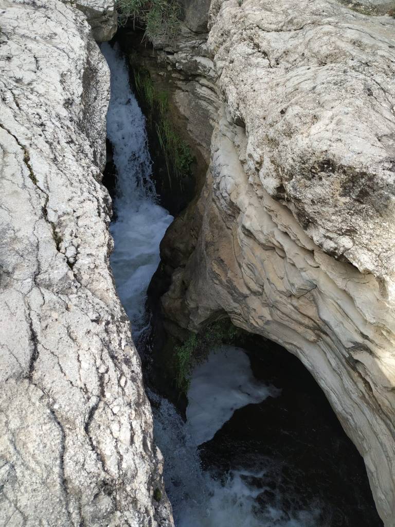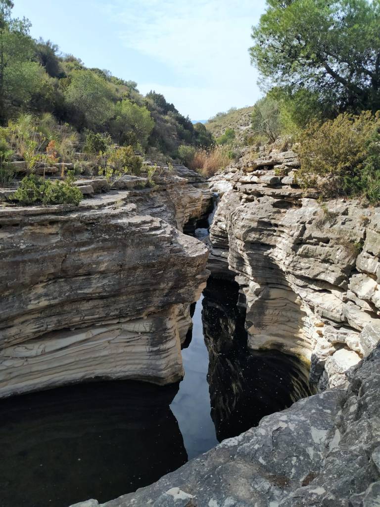 Comenzamos a ver cómo se encajona para formar el estrecho propiamente dicho. Vamos siguiendo los numerosos hitos de piedra, admirando las terrazas y pequeñas cascadas, así como los restos sedimentarios y fósiles.