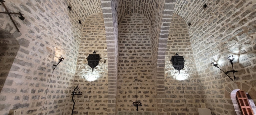 En la Sala del Homenaje, resaltan las tres bóvedas paralelas de medio cañón levantadas sobre arcos ojivales.