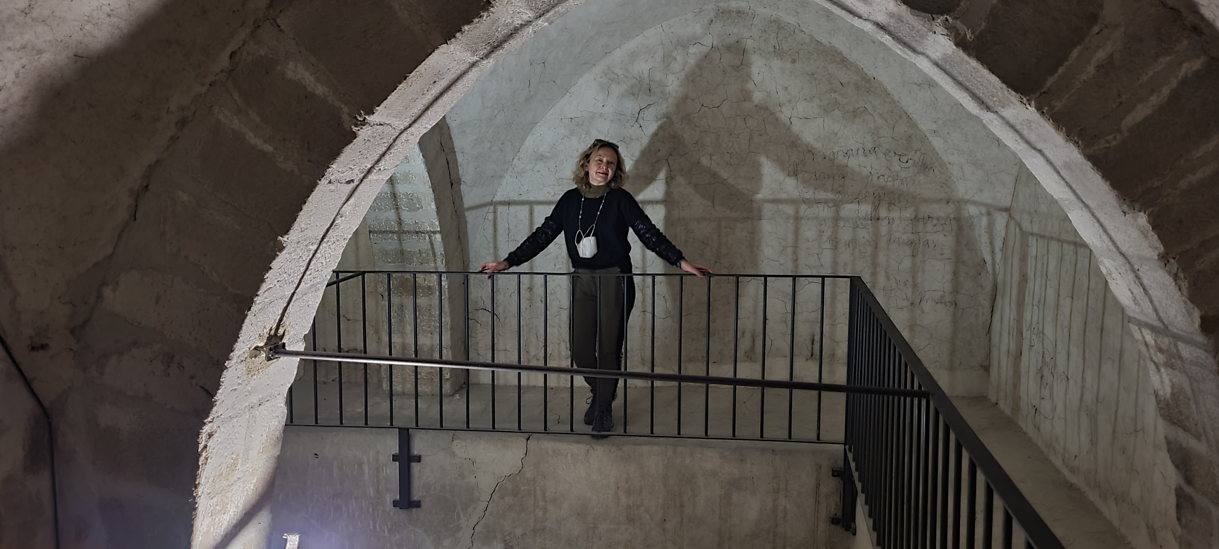 En la pared este de la sala arranca la escalera mural de acceso a la terraza almenada, último reducto defensivo de la fortificación.