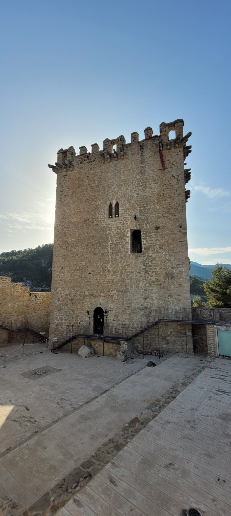 Hacia el s. IX se levantó la primera estructura islámica sobre restos neolíticos e ibéricos, constituyendo un punto importante dentro de la organización defensiva de Al-Andalus. La Orden de Santiago lo reconstruye, destacando la Torre del Homenaje (s. XV), de estilo gótico militar levantino, con 22 m de altura y 9 m de lado.