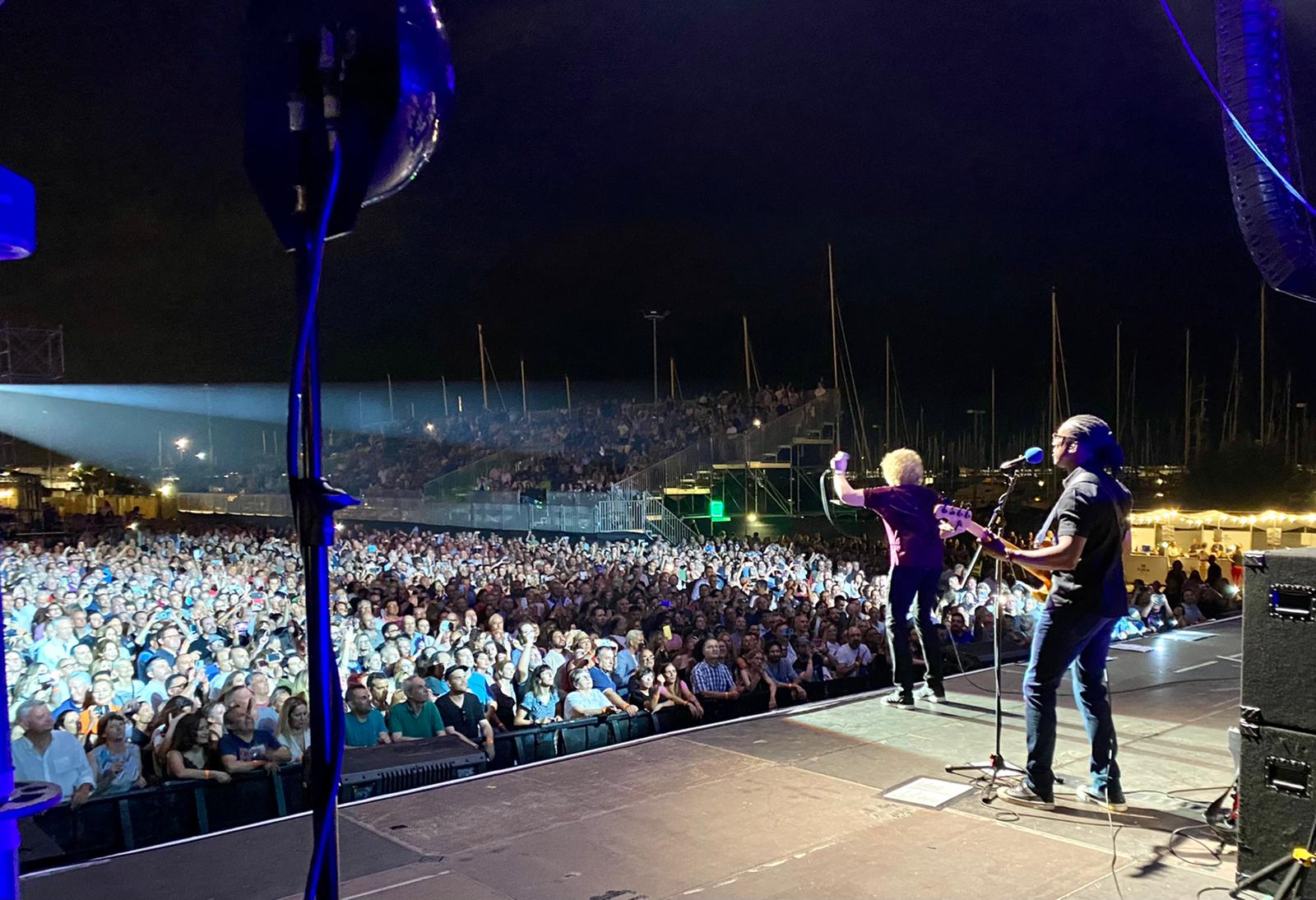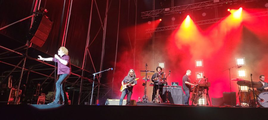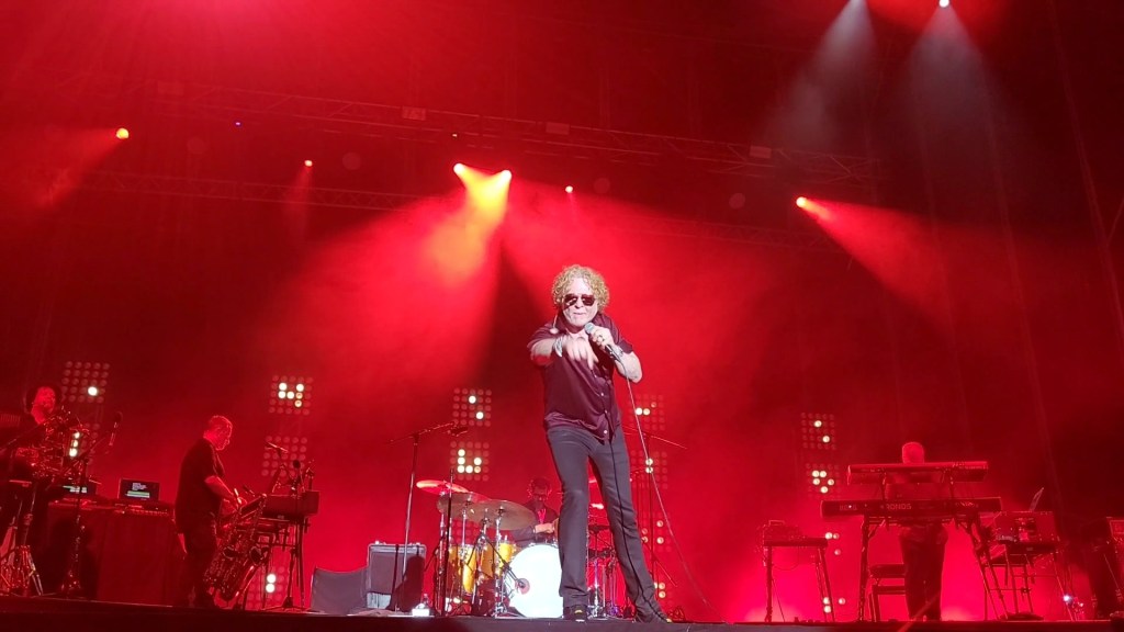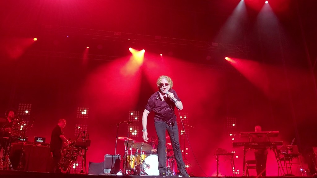 Y además, por qué no decirlo, tiene un aliciente igual de fundamental en la persona de su cantante, Mick Hucknall, uno de los pelirrojos-pecosos más emblemáticos de la escena internacional de varios decenios, que cumplía horas más tarde 62 años, hecho que el público le respondió en los últimos instantes del concierto, a lo que Mick respondió en un claro castellano “mañana”.