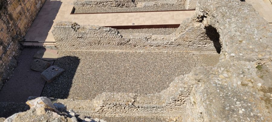 En uno de sus extremos, en el mismo acceso que la Torre del Pretorio, podemos recorrer lo que eran sus antiguos vomitorios, por donde los espectadores accedían a su lugar en las gradas.