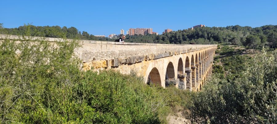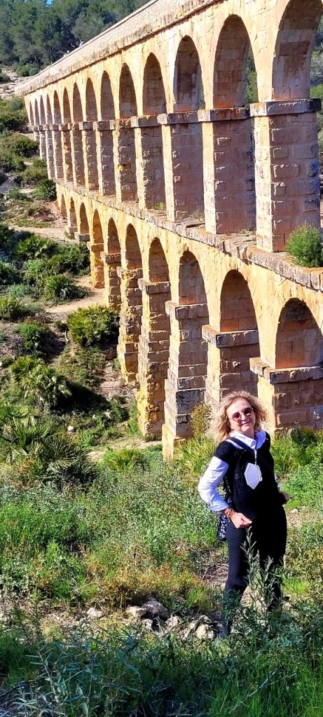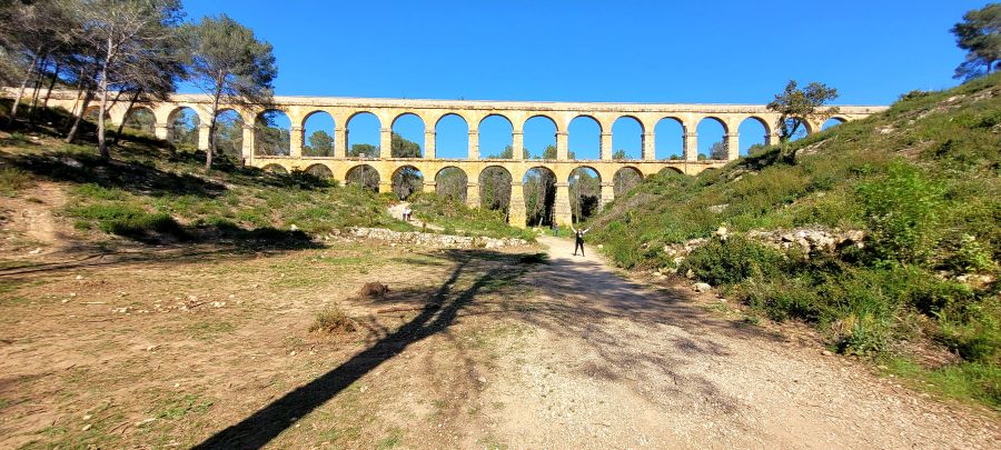 Tras salir del hotel nuestro primer destino, en coche, fue el Acueducto. En el siglo I se construyeron dos largos acueductos para abastecer de agua a la ciudad. El primero, que recibía el nombre de Aqua Augusta, tomaba el agua del río Gaià y tenía una longitud de 50 km. El segundo la tomaba del Francolí y su longitud era de unos 15 km.