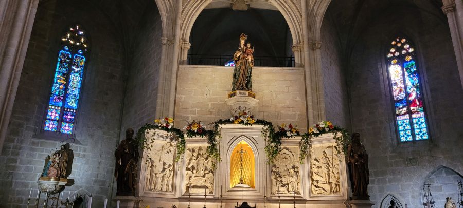 En el interior podemos ver la Capilla del santísimo en la que destaca la imagen gótica de la Virgen del Cor, de madera policromada, un original órgano barroco y un retablo de piedra policromada del siglo XIV de San Bernat y San Bernabé.