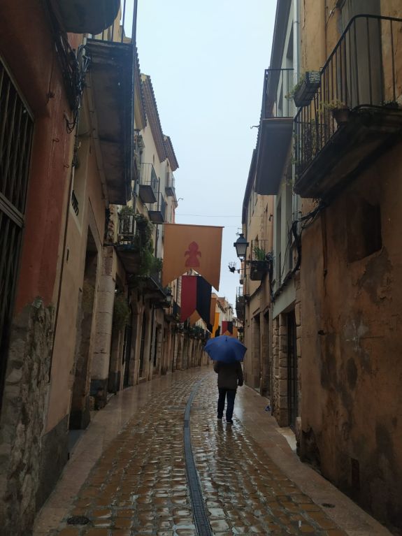 Tras la intensa tormenta de la tarde anterior, la lluvia seguía cayendo a media mañana. No habían llamado de Audi Vilamòbil Tarragona, pero decidimos desplazarnos al taller en autobús. Acertamos. Al rato disponíamos del vehículo y estábamos preparados para retomar la visita del día anterior: Montblanc.