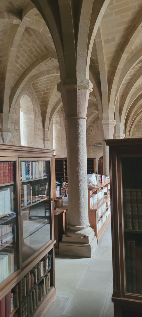 También se puede ver el locutorio y la biblioteca con el scriptorum medieval del siglo XIII, en el que se escribieron y copiaron importantes libros. En la actualidad cuenta con más de cien mil ejemplares. Y la Sala Capitular, de planta cuadrada de 15 metros de lado, cuatro columnas centrales con bonitos capiteles, sujetan los nueve tramos con bóvedas de crucero, sostenidos en el centro por cuatro columnas.