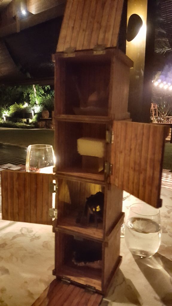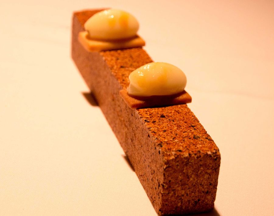 El menú lo abrían cuatro aperitivos dispuestos en una torre de cajitas de madera. En cada una de las puertas de las cajitas el nombre de un elemento. Detrás de cada puerta una deliciosa sorpresa. Cuatro bocados a modo de obertura que eran el preludio de una sinfonía gastronómica.