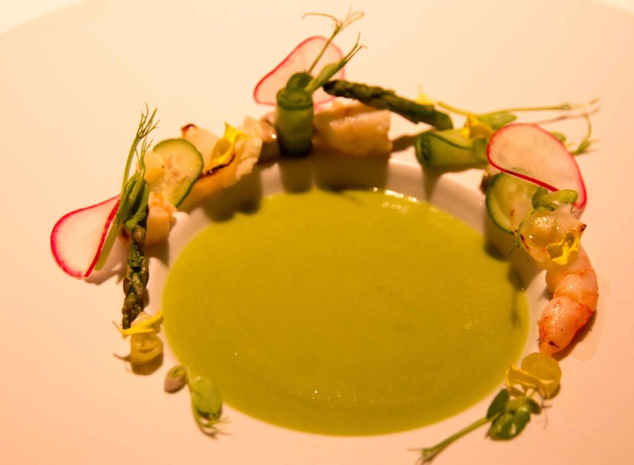 Crema de Guisantes. Intenso sabor a guisante, con un retrogusto picante que queda de fondo en boca. Importante tomar cada bocado en conjunto.
