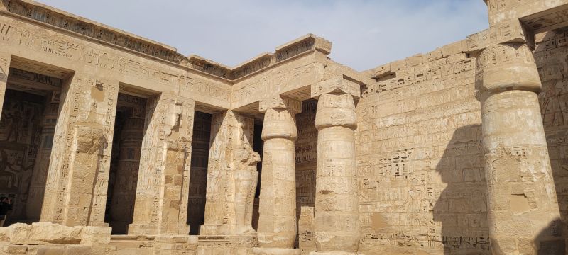 Este templo funerario, conocido como la “Casa de Millones de Años”, del rey Ramsés III (segundo monarca de la dinastía XX) se encuentra en la orilla oeste de la antigua Tebas. Además del templo, este emplazamiento cuenta con otras edificaciones de periodos anteriores y posteriores al templo funerario del que muchos consideran el último gran monarca de Egipto. El hecho de que el emplazamiento sufriera continuas ampliaciones da una muestra de la importancia que tuvo este lugar.