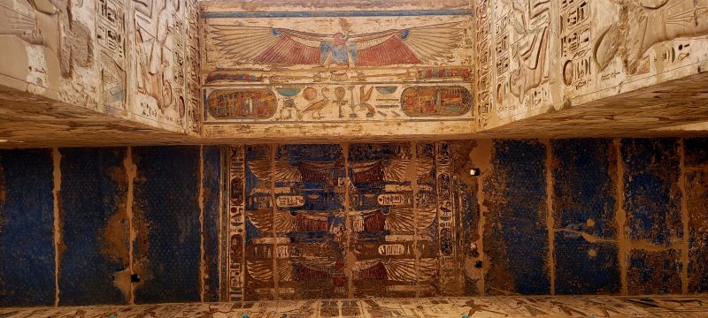 La decoración de este espacio representa escenas de batalla, así como escenas religiosas, estas últimas en honor a los dioses Sokar y Min, mostrando adoraciones a las divinidades y procesiones de la barca sagrada.