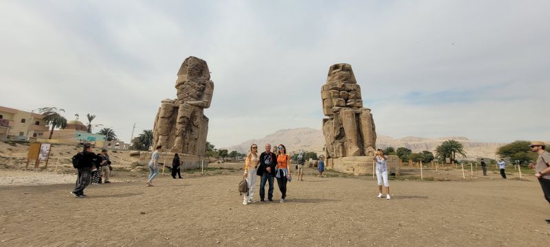 A pocos metros de Medinet Habu se hayan los colosos de Memnon, dos magníficas estatuas que representan a Amenhotep III, que reinó en Egipto desde 1386-1353 a. C. Este lugar también se conoce como el-Colossat o el-Sanamat.