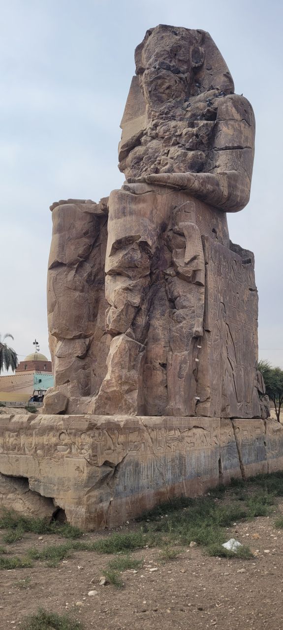 Inicialmente, estas grandes estatuas debían hacer guardia en la entrada del templo conmemorativo de Amenhotep. Este templo fue una construcción masiva construida durante la época del rey. Aquí fue adorado como un dios en la tierra antes y después de su muerte.