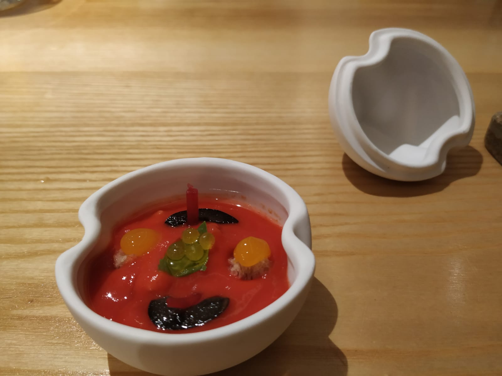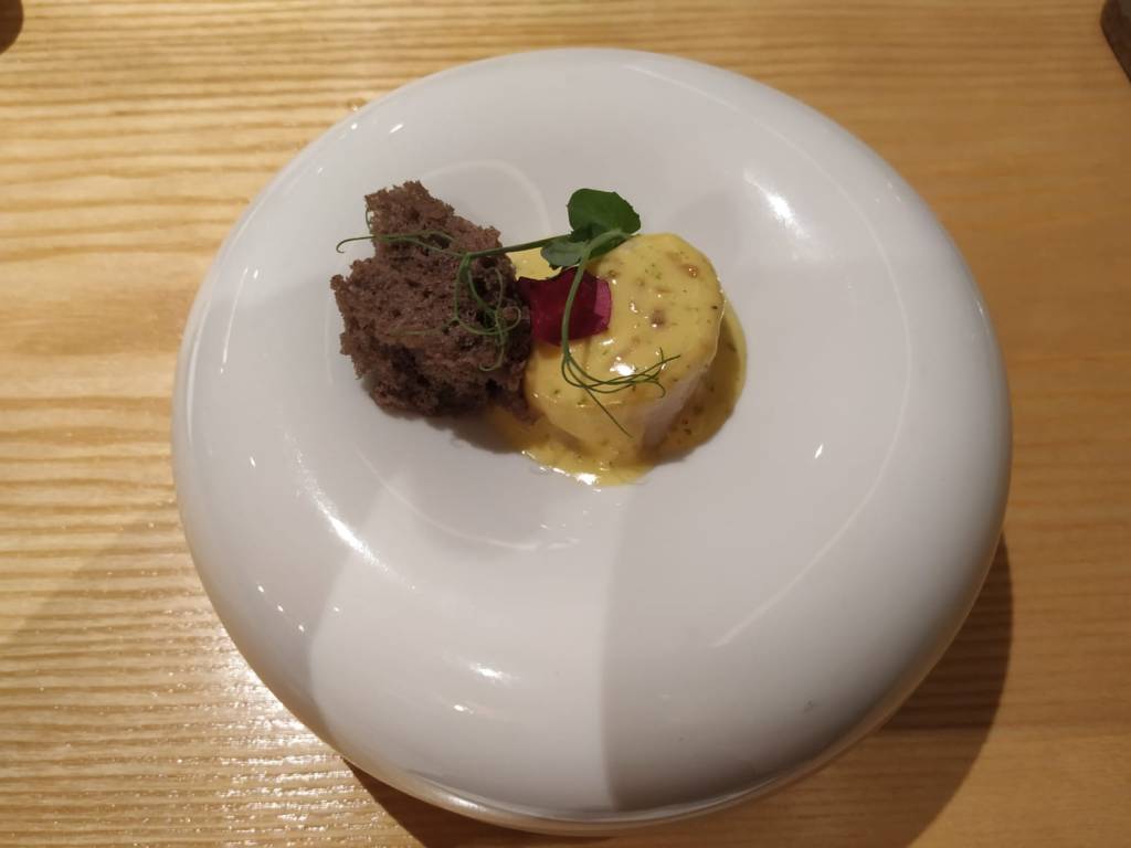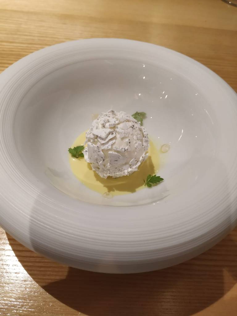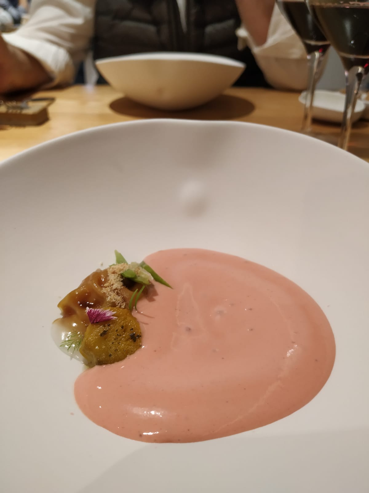 …que comienza con unos Snacks compuestos de Quesos de autor – romero y jengibre (toda una explosión de sabor), Salpicón de mújol y lechuga de mar, Gyoza “umami” de cordero segureño y Arepa de costilla de chato y menta. Un inicio que prometía…
