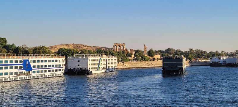 Navegábamos hacia Kom Ombo.Ya, desde lejos, divisábamos desde la motonave el templo dedicado a los dioses Sobek y Haroeris.