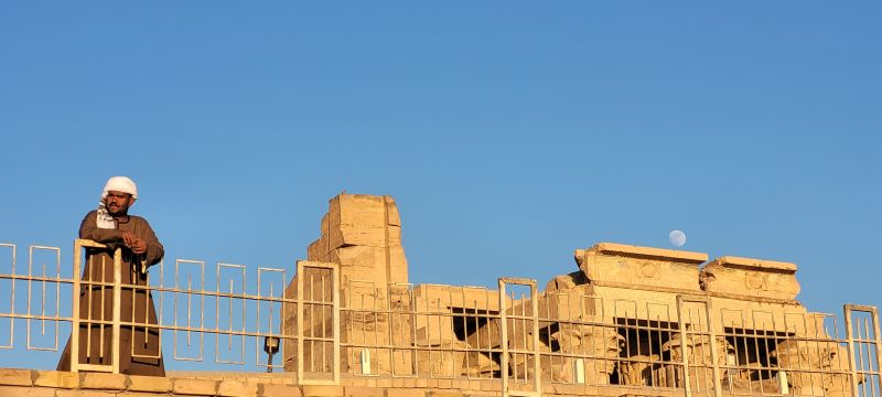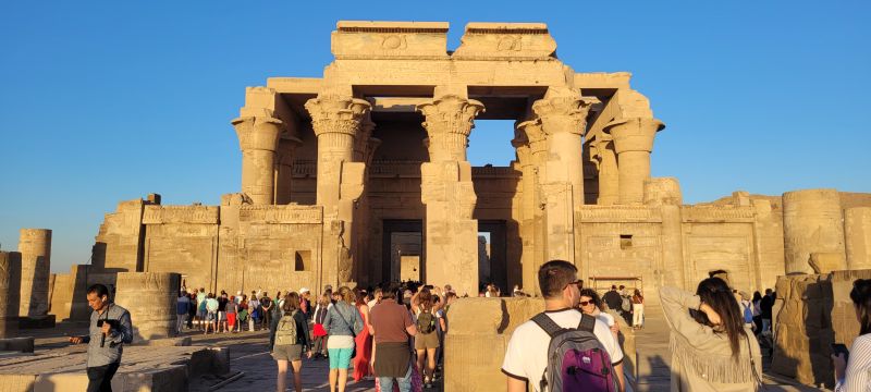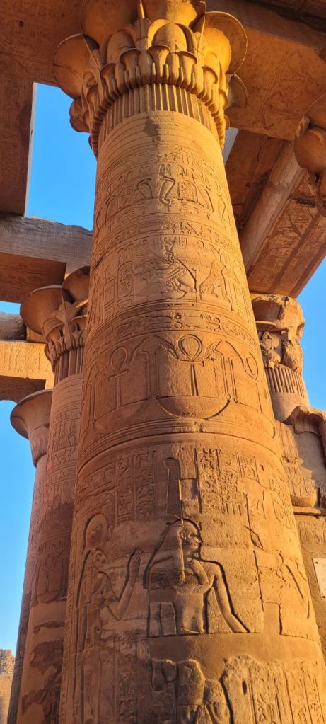 Kom Ombo es, además, el único templo dedicado a dos divinidades: Haroeris, la encarnación de Horus el viejo; y Sobek, el temido dios con cabeza de cocodrilo (al que me tocó representar).