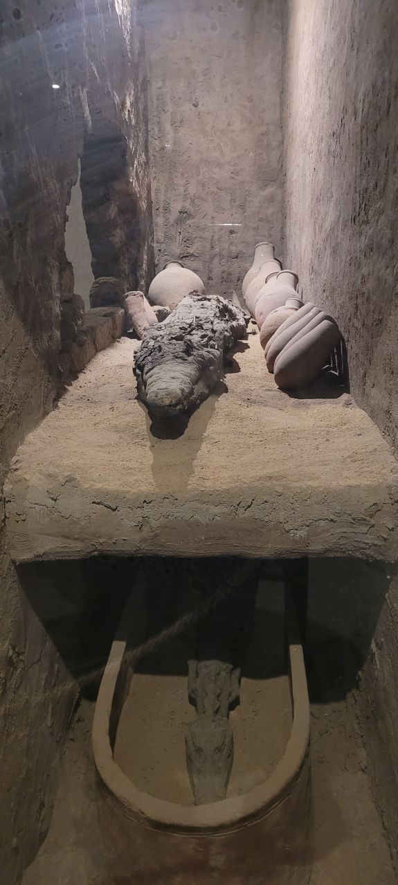 Tras la visita al templo, y de regreso a la motonave, contemplamos el Museo del cocodrilo, ubicado en el santuario de Sobek (erigido por Tutmosis III). Se trata de un pequeño espacio de luz tenue donde se muestra la estrecha relación de este animal con la civilización egipcia en época faraónica.