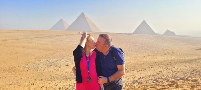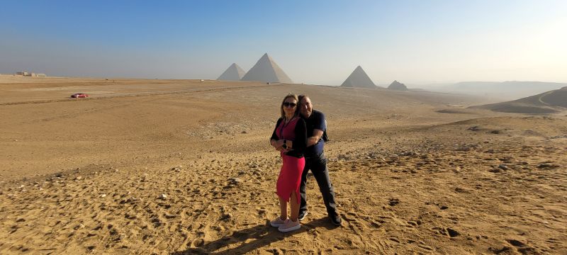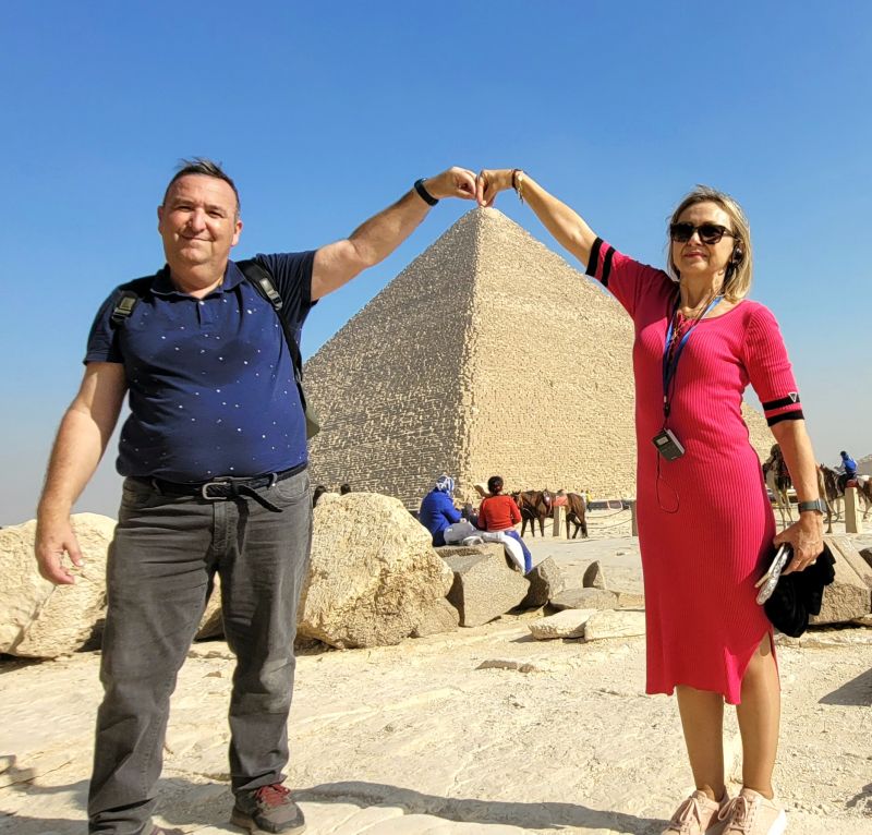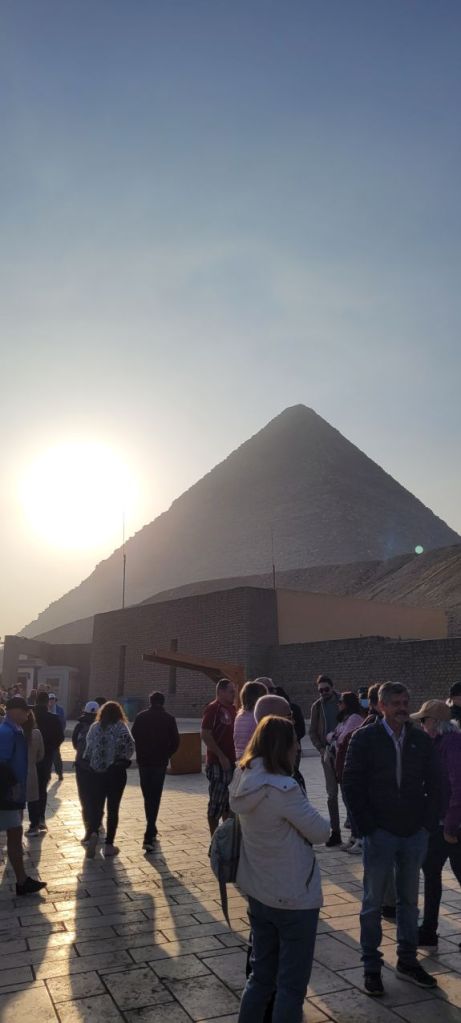 Dicen que una vez en la vida hay que visitar, al menos, Egipto. Esta mañana, en el convulso desayuno, éramos conscientes que muy pronto contemplaríamos las Pirámides de Egipto, construidas hace más de 4.500 años, la maravilla más antigua y la única que se conserva, que sirvieron como tumba a los faraones egipcios, cuyos cuerpos momificados se rodearon de tesoros y objetos personales. Levantadas sobre la arena del desierto, esbeltas, majestuosas, son algo más que un templo y una tumba.