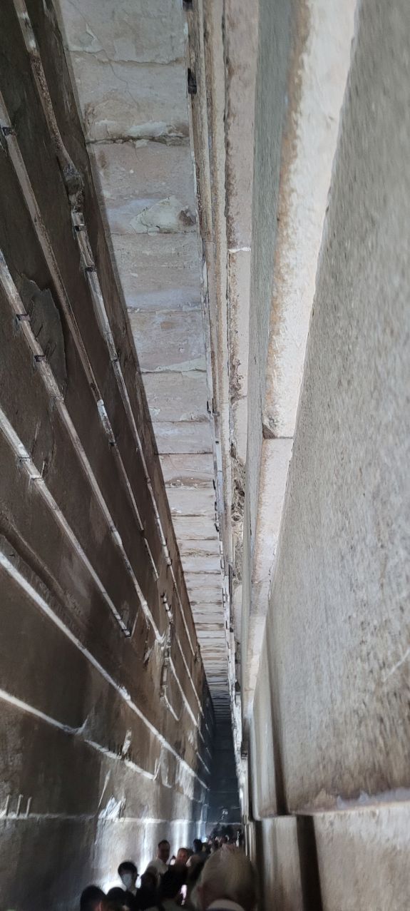 Sobre el techo se encuentran las llamadas cámaras de descarga, y la más alta dispone su techo con grandes bloques inclinados, a dos aguas, para desviar la gran presión que ejercen los bloques superiores de la pirámide, evitando que todo el peso descargue sobre el techo de la cámara real. Se accede a ella por un pasaje horizontal llamado antecámara que parte del extremo superior de la Gran Galería.