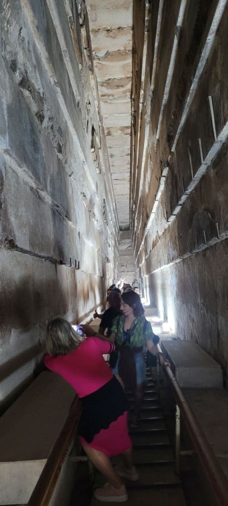 ¿Merece la pena entrar a las pirámides? En nuestro caso, la respuesta a esta pregunta fue afirmativa. Al menos a una de ellas y, si puedes permitirte ir a la de Keops, pues mejor. El interior de las pirámides es bastante espartano. Nada que ver con esas salas decoradas del Valle de los Reyes y las Reinas, en Luxor, o las cercanas tumbas de la espectacular Saqqara que contemplaríamos esa misma tarde.