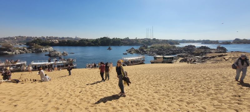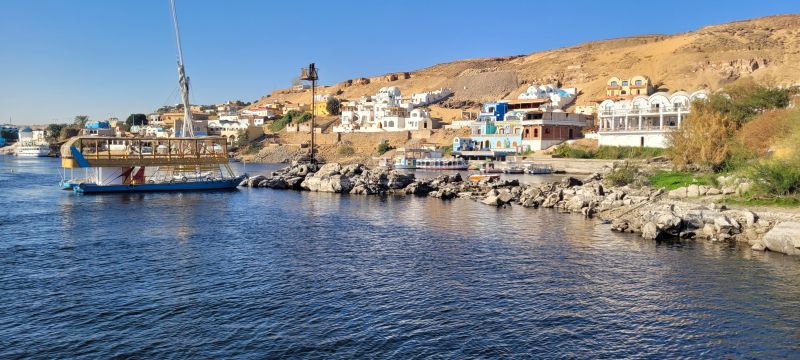 Primero atravesamos el río Nilo a bordo de una faluca tradicional, pilotada por Pedro, para pasar más tarde a una barca a motor para descubrir el pueblo más auténtico de Egipto, Gharb Soheil, y conocer la vida cotidiana de los nubios.