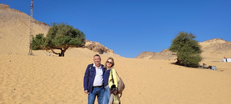 Originalmente el pueblo nubio vivía en este desierto, pero fue despoblado de sus casas y sus tierras cuando las aguas de la presa de Aswan lo inundaron todo y, al igual que muchos templos faraónicos que no pudieron ser rescatados, sus pueblos yacen en el fondo del lago Nasser. Los nubios fueron trasladados por el gobierno egipcio a islas junto al Nilo en la ciudad de Aswan, donde viven en la actualidad en coloridos poblados, algunos de ellos turísticos, como el que íbamos a visitar.