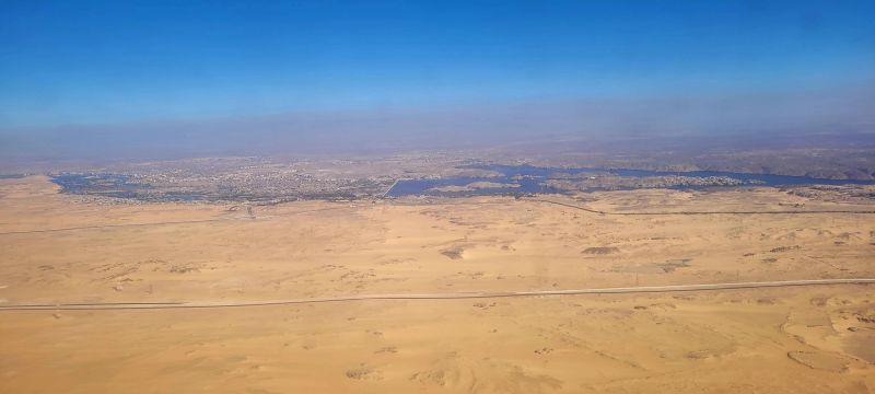 El tráfico de Aswan a esas horas de la mañana no facilitaba la tarea de llegar al aeropuerto. Es posible que batiéramos el record mundial de pasar controles de seguridad, realizar los trámites de facturación y embarcar. No recuerdo una espera menor en un aeropuerto en ninguno de nuestros viajes.