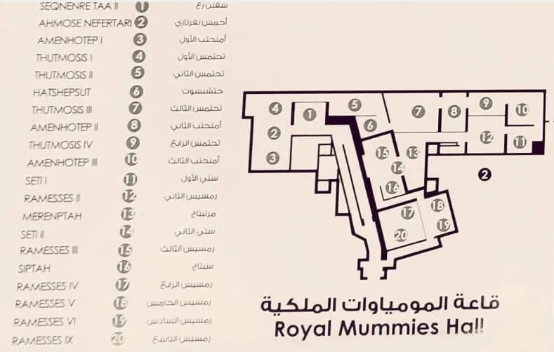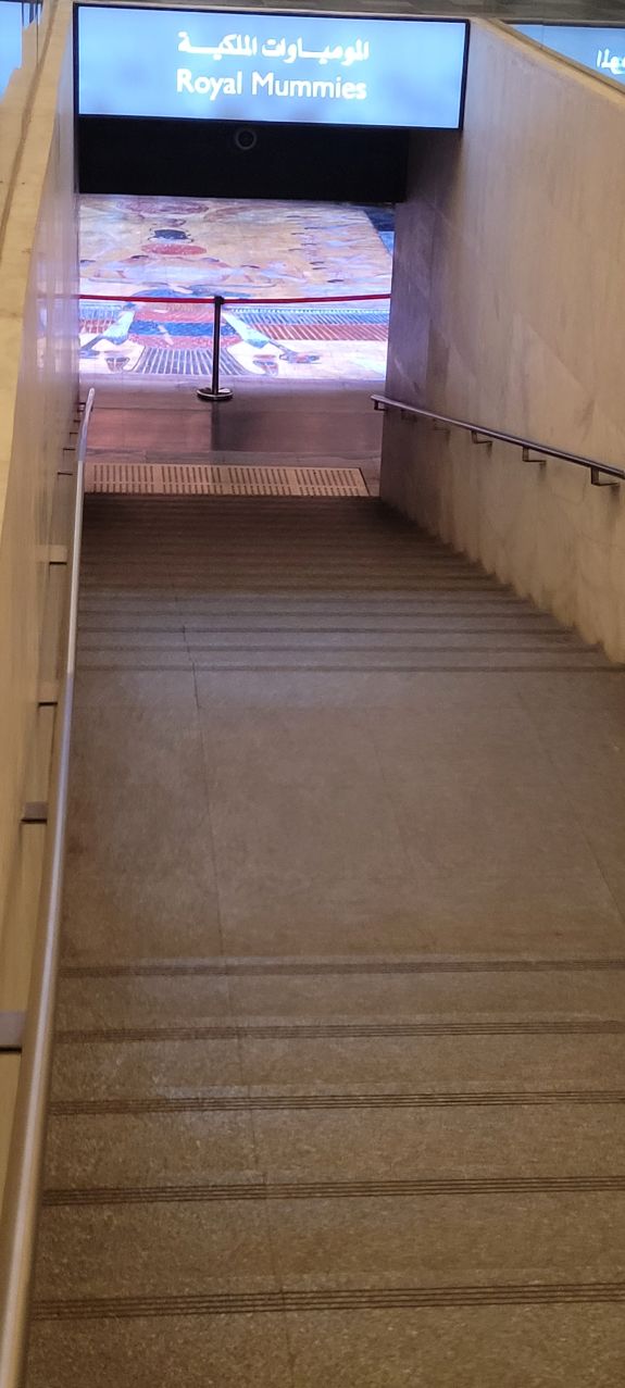 Mummies Hall (Hall de las momias) es, posiblemente, la zona estrella del museo. A ella se accede por una rampa que parece buscar un efecto inmersivo en el visitante, evocando la experiencia del Valle de los Reyes.