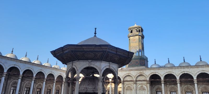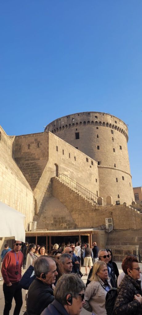 La Ciudadela de Saladino era nuestro primer destino. Se encuentra en el área de El Muqattam, en la calle Salah Salem. Fue establecida principalmente por Saladino, el sobrino del sultán Nur El Din Mahmud, que logró conquistar a los cruzados. Asumió el poder de Egipto en 1169 fundando la dinastía ayyubí en Egipto. Estableció esta Ciudadela militar para ser el centro de gobierno y la colocó sobre las colinas de Muqattam, en un lugar muy estratégico que domina la ciudad de El Cairo y El Fustat.