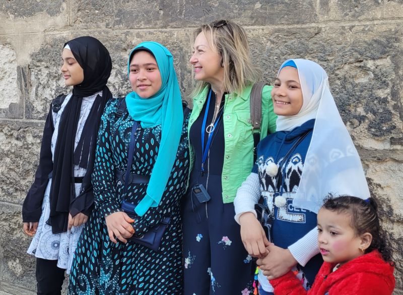 Mientras salíamos de la Ciudadela, algunas, no todos, eran demandadas para tomarse fotografías con los jóvenes egipcios. Es, para ellos, algo habitual y simpático, como corroboraríamos, más tarde, en el Museo Nacional de la Civilización Egipcia.