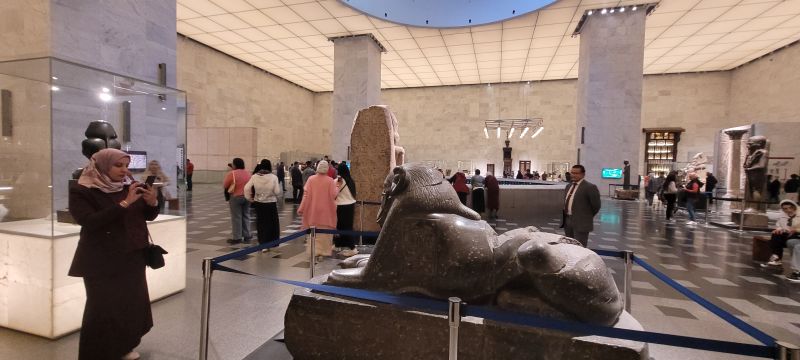 Tal como entramos al inmenso y diáfano espacio nos dirigimos a la derecha para hacer un recorrido en sentido antihorario, desplazándonos por las distintas etapas de la Historia de Egipto.