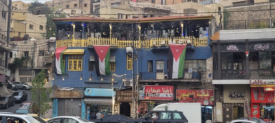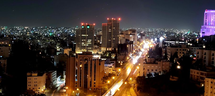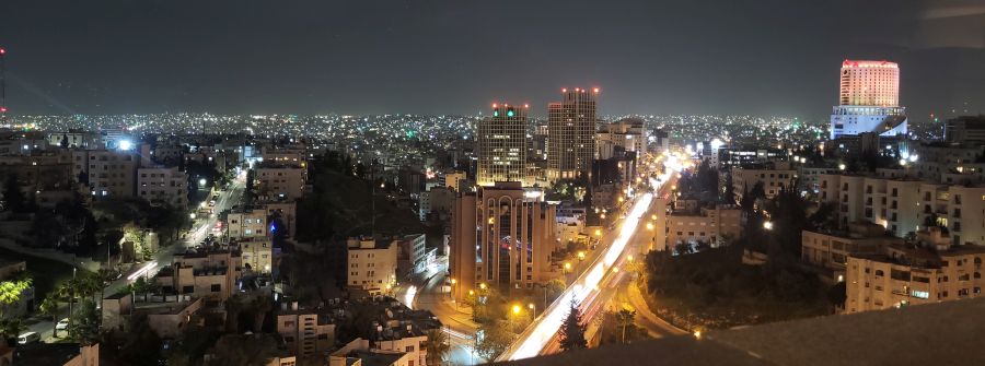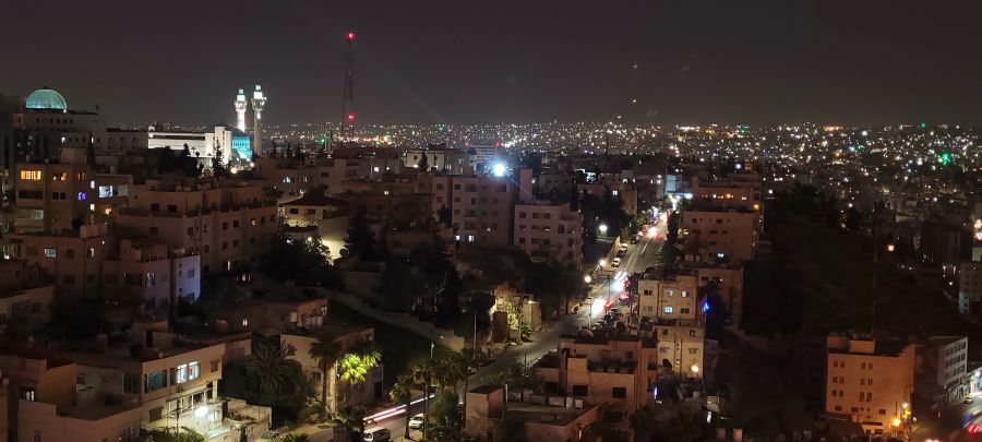 Más tarde, algunas fotos del skyline del Amman moderno y una agradable tertulia en el Ghoroub, situado en la planta 13, con Toñi y Antonio, dos empedernidos viajeros con los que ya habíamos coincidido en el lejano Egipto.