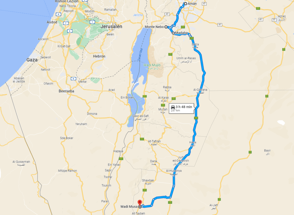 Si en el día anterior habíamos transitado por (parte) de la Decápolis, hoy recorreríamos parte del Camino de los Reyes hasta llegar a una de las joyas del viaje: Petra.