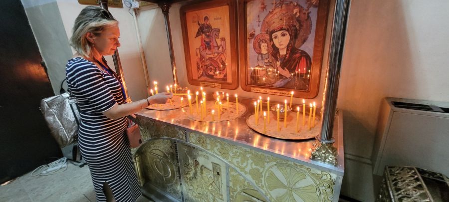 No disponíamos de mucho tiempo, y de entre todos sus centros de interés, que merecen una reposada visita, el elegido era la Iglesia de San Jorge, de rito ortodoxo griego, donde se conserva el Mapa de Tierra Santa.
