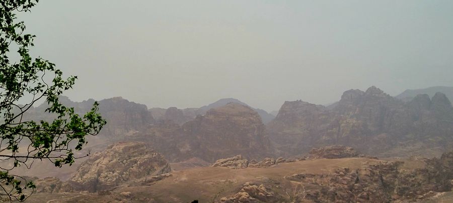 De vuelta al autobús, al mediodía, pusimos rumbo a Wadi Musa, por una autopista del desierto en la que atravesamos, incluso, una tormenta de arena. Mohamed, nuestro guía, nos quiso tranquilizar indicándonos que “estaba científicamente demostrado” que con diez minutos de lluvia la tormenta desaparecería. En esta ocasión se equivocó…