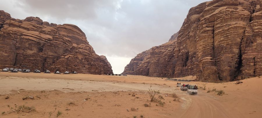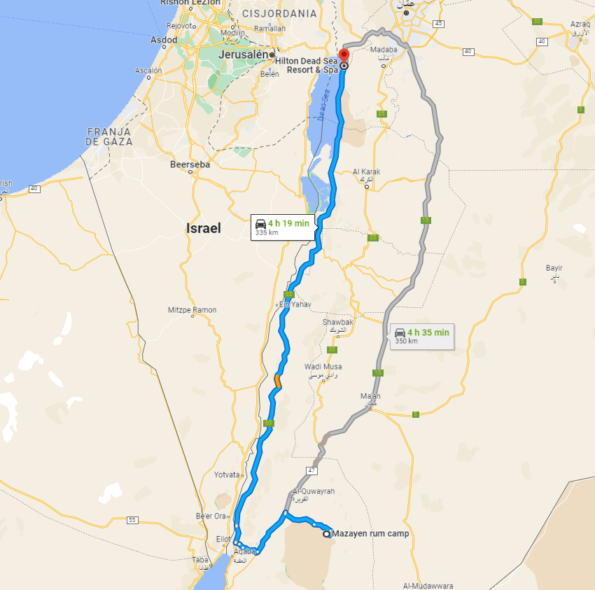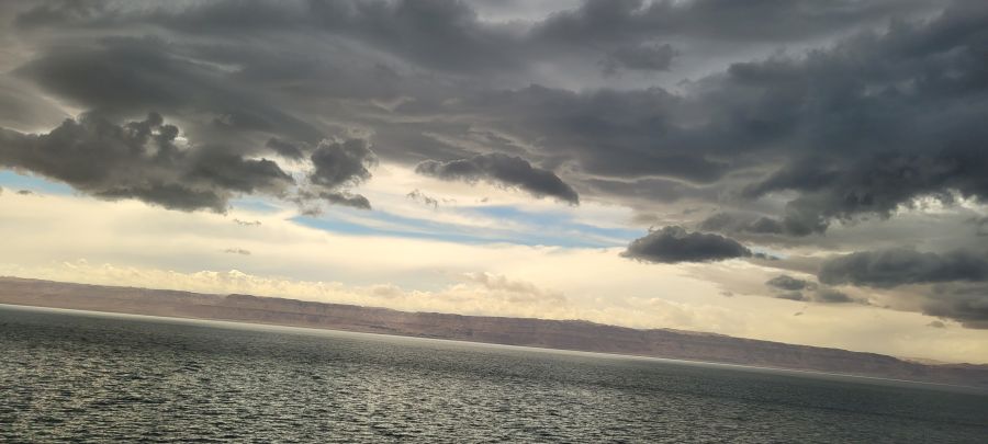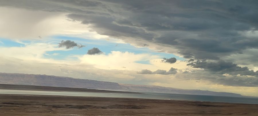 Retomamos el camino hacia el campamento y rápidamente emprendimos viaje hacia el Mar Muerto. Una breve parada en Aqaba (ciudad portuaria en el Mar Rojo) para repostar y una “parada hidráulica” posterior (inevitablemente, aprovechada también para compras) antes de recorrer los más de trescientos kilómetros que nos separaban del Mar Muerto, que nos recibió con una espectacular granizada (finalizada la tregua de Wadi Rum, volvíamos al mal tiempo).