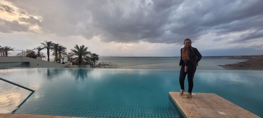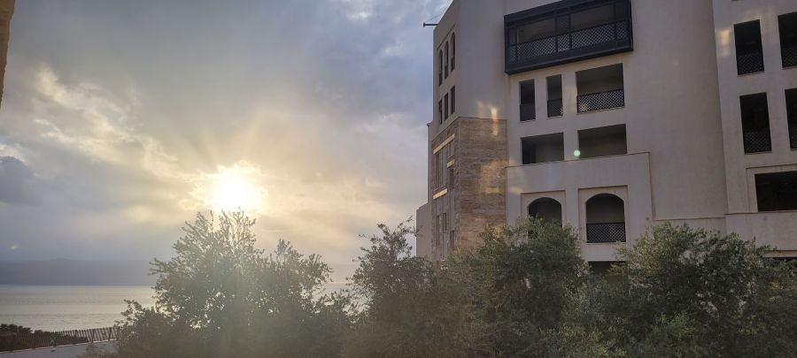 No llegamos con tiempo suficiente para disfrutar de las instalaciones del hotel y bañarse en el Mar Muerto. Tampoco el tiempo acompañaba.