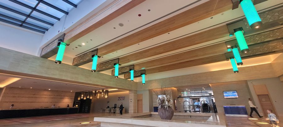 Llegamos al Hotel Hilton Dead Sea Resort 5* pasada la hora de la comida, efectuando un frugal almuerzo en el Moringa Seafood Restaurant مطعم مورنجا للمأكولات البحرية (محافظة البلقاء Dead sea, Jordania).