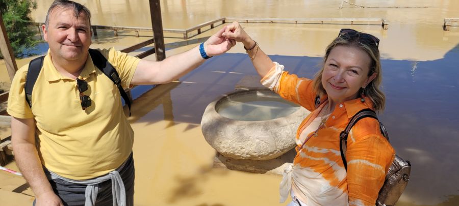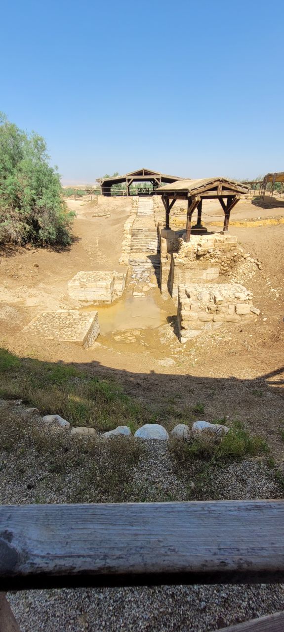 Era el día señalado para disfrutar de sus aguas, y de las instalaciones del resort en el que nos alojábamos. Pero en la mañana visitaríamos el Sitio del Bautismo de Jesús, “Betania más allá del Jordán” (al-Maghtas). La expresión al-Maghtas significa “inmersión” y, por extensión, “bautismo” en árabe. El bautismo por inmersión es un método de bautismo que se distingue del bautismo por afusión (vertido) y por aspersión (rociado), y los eruditos bíblicos generalmente están de acuerdo en que la iglesia primitiva prefería los bautismos por inmersión, seguramente inspirados por los propios de Jesús. Aunque está documentado que la iglesia primitiva también usaba otras formas de bautismo, la inmersión era probablemente la más usada. Desde los tiempos bizantinos, este lugar ha sido considerado no solo como la ubicación original del sitio donde se bautizó a Jesús, sino también como el área donde vivió y ejerció su ministerio Juan el Bautista, y como el sitio de la Ascensión del Profeta Elías al Cielo.