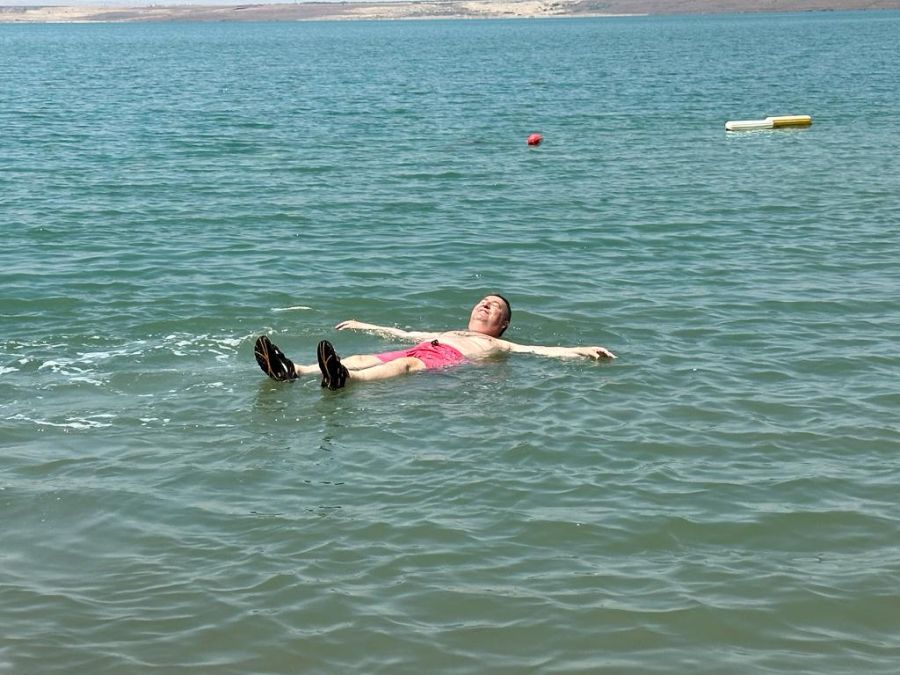 Nada más poner un pie ya pudimos sentir lo densa que es el agua y lo untuosa que resulta al tacto, pero lo de sacar manos y pies y estar como sentado es algo sorprendente, una experiencia imposible de vivir en ninguna otra parte del mundo.