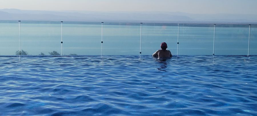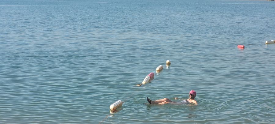 Mientras que nuestros compañeros hacían sus últimas compras, Dona y yo no pudimos esperar más tiempo para zambullirnos en sus aguas y experimentar esa sensación de flotar de la que todo el mundo habla.