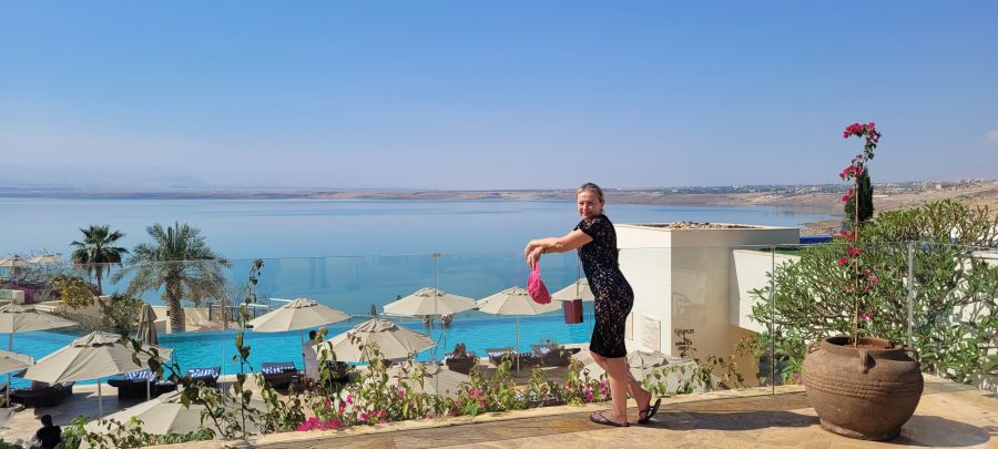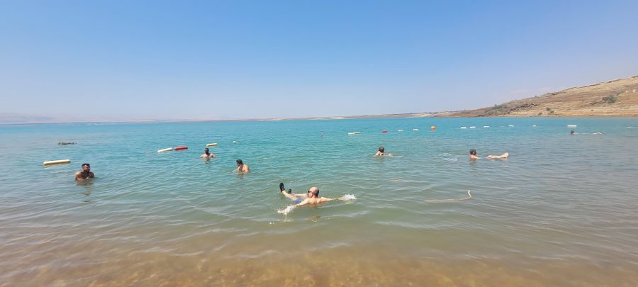 Mientras que nuestros compañeros hacían sus últimas compras, Dona y yo no pudimos esperar más tiempo para zambullirnos en sus aguas y experimentar esa sensación de flotar de la que todo el mundo habla.