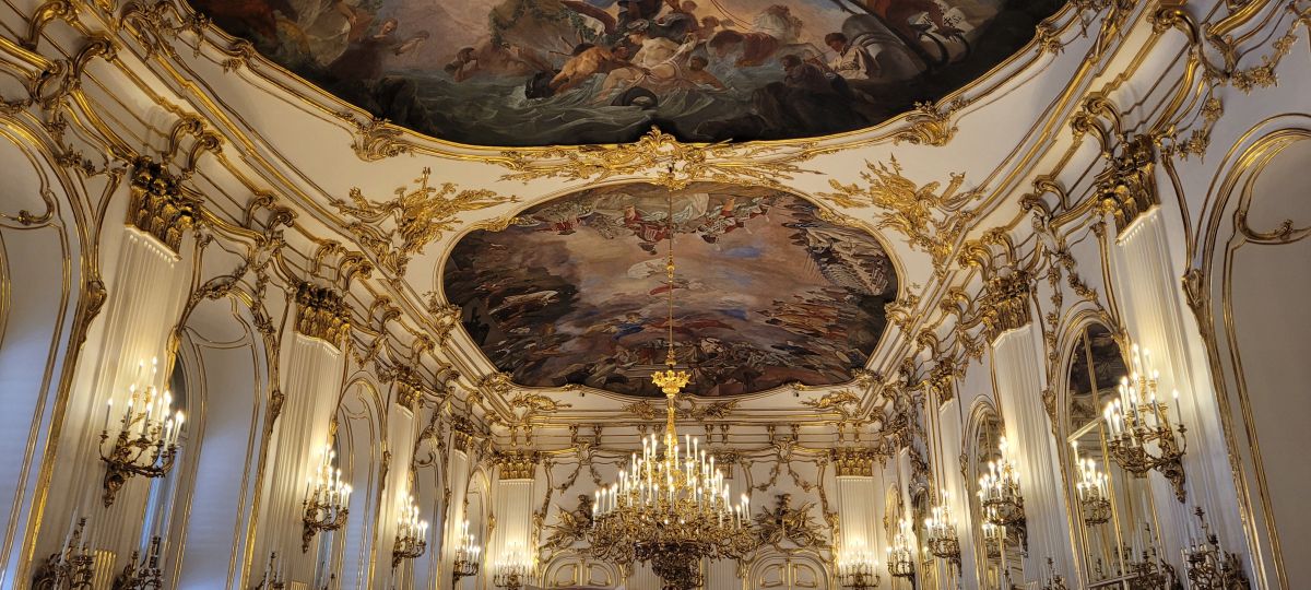 De nuestra visita por los “State Apartments” destacamos la Gran Galería y la Pequeña Galería. La gran galería, situada en el centro del palacio, fue utilizada por la familia imperial para bailes, recepciones y banquetes de gala. Con una longitud de más de 40 metros y un ancho de casi 10 metros, la gran galería brindaba el marco ideal para las celebraciones de la corte.