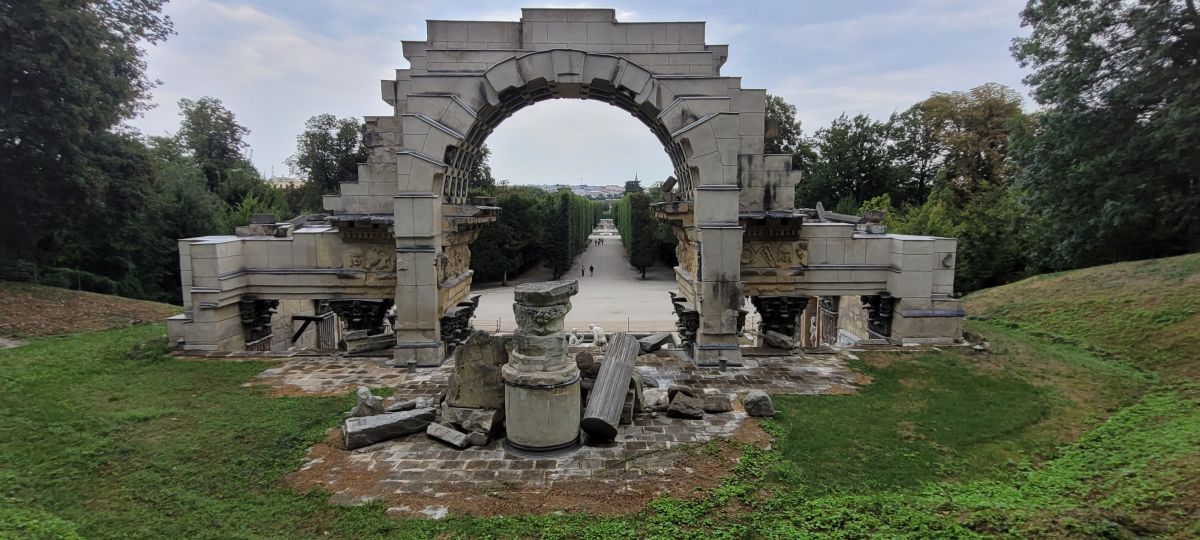 En 1683, el Palacio de Schönbrunn fue víctima de los turcos durante el asedio de Viena. Leopoldo I decide reconstruir el Palacio y, en 1688, J. B. Fischer von Erlach el Viejo presenta al emperador un grandioso primer proyecto de reconstrucción que competía en lujo con el Palacio de Versalles. Las obras fueron iniciadas por Fischer von Erlach en 1696 en la orilla derecha del río Wien, siguiendo el primer proyecto simplificado por el propio arquitecto, y se terminaron a principios del siglo XVIII, obteniendo como resultado una impresionante construcción palaciega barroca.