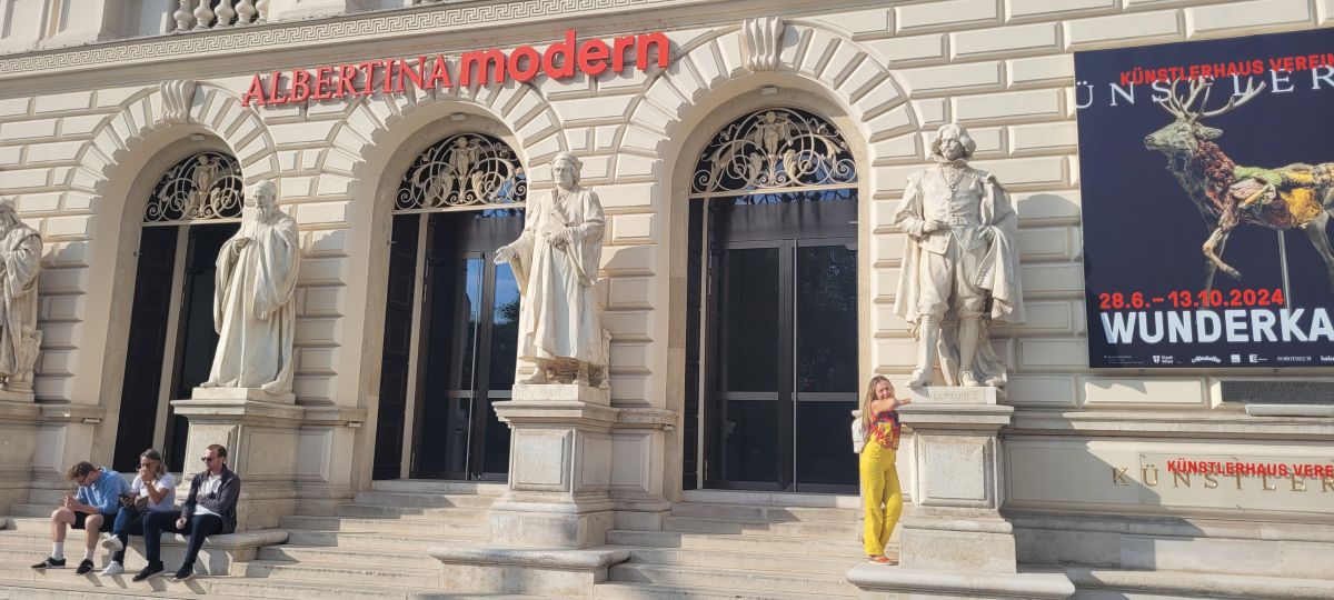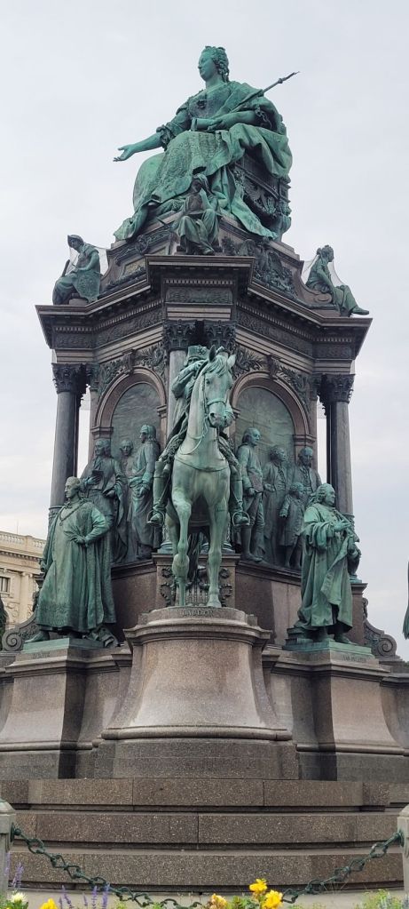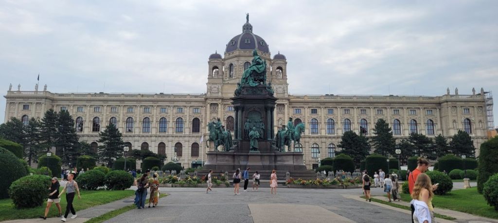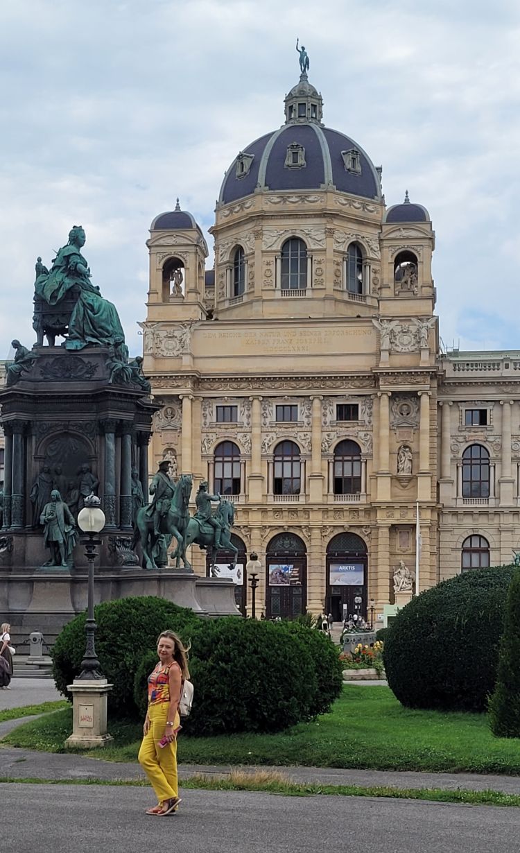 Al abandonar la casa pensamos que ya era una buena hora para comer. Queríamos visitar más tarde el Café Sacher, situado detrás de la Ópera del Estado de Viena, por lo que nos dirigimos hacia esta zona, eligiendo la Trattoria La Scala Pizzeria (Elisabethstraße 13, 1010 Wien), que ya habíamos localizado la tarde anterior. En nuestro camino hacia la trattoria pasamos por la Plaza María Teresa (Maria-Theresien-Platz), en la que se encuentran dos prestigiosos museos.