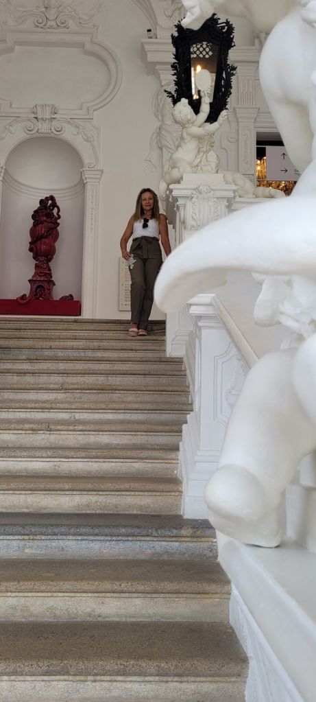 A la salida teníamos el tiempo justo para desplazarnos al Belvedere, amplio conjunto palaciego formado por un palacio barroco, compuesto a su vez por los edificios del Alto Belvedere o Belvedere Superior, Bajo Belvedere o Belvedere Inferior, el invernadero (Orangerie) y el Prunkstall (antiguos establos), así como por unos maravillosos jardines barrocos que separan el Belvedere Superior del resto.
