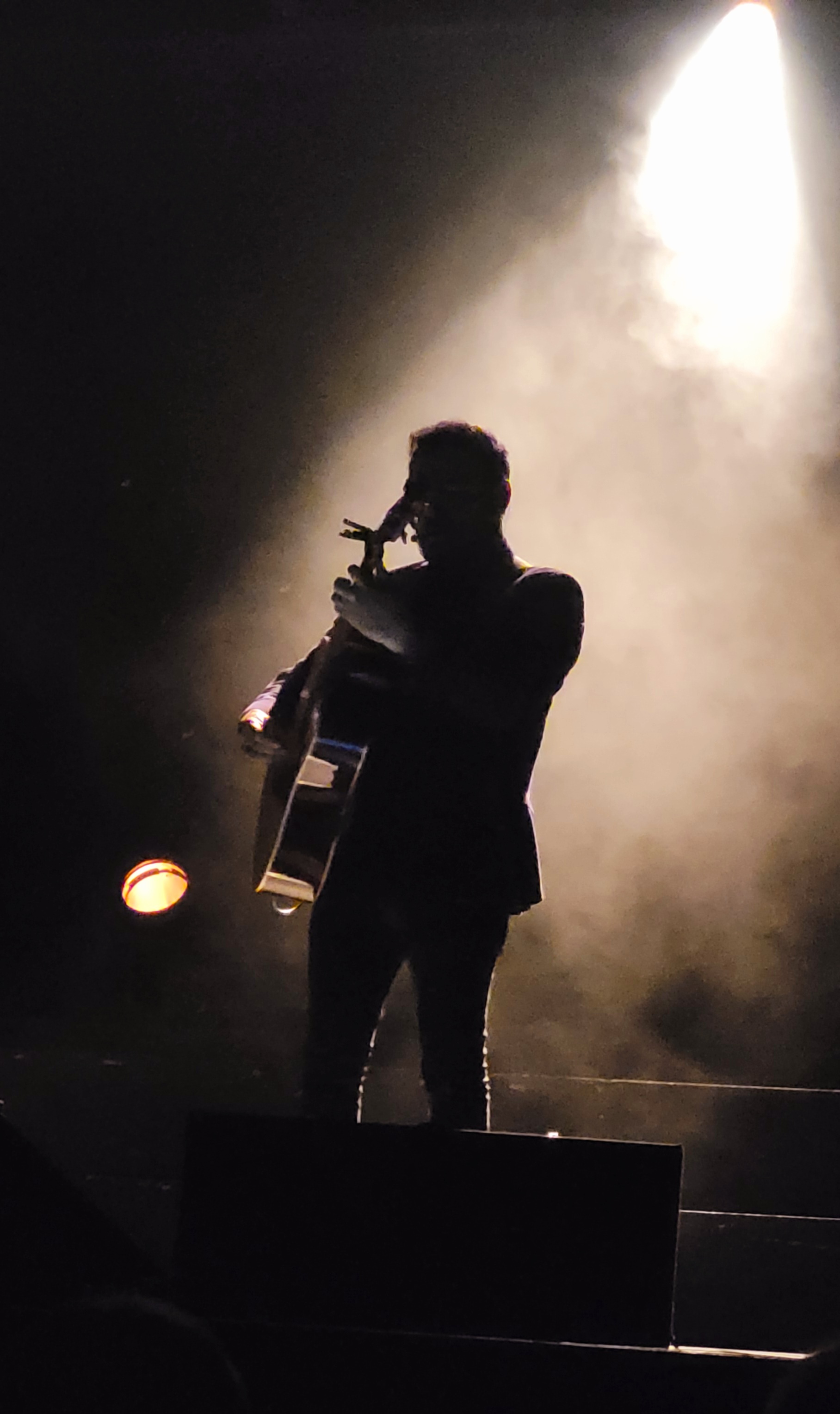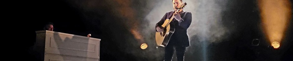 El concierto se desarrolló de manera íntima y austera. En el centro del escenario, Ismael con su guitarra acústica y un micrófono de diadema, de estos que van acoplados y fijos frente a la boca, que suelen ser utilizados por los artistas que se mueven mucho por el escenario y no quieren estar atados al pie de micro. Le acompañaba, a su derecha, Jacob Sureda en el piano y programaciones.