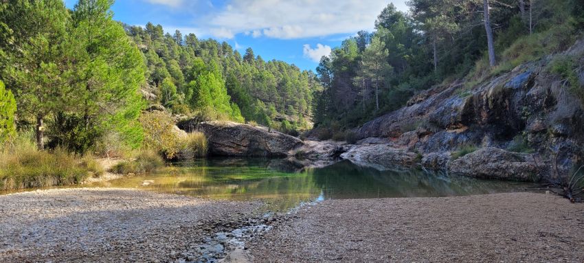 Posteriormente decidimos acercarnos hasta el espacio natural de La Pesquera, un conjunto de pozas o «tolls» del río Ulldemó, afluente del río Matarraña. Las pozas presentan diferentes tamaños y dan lugar a algunas de las piscinas naturales más bonitas de la zona.
